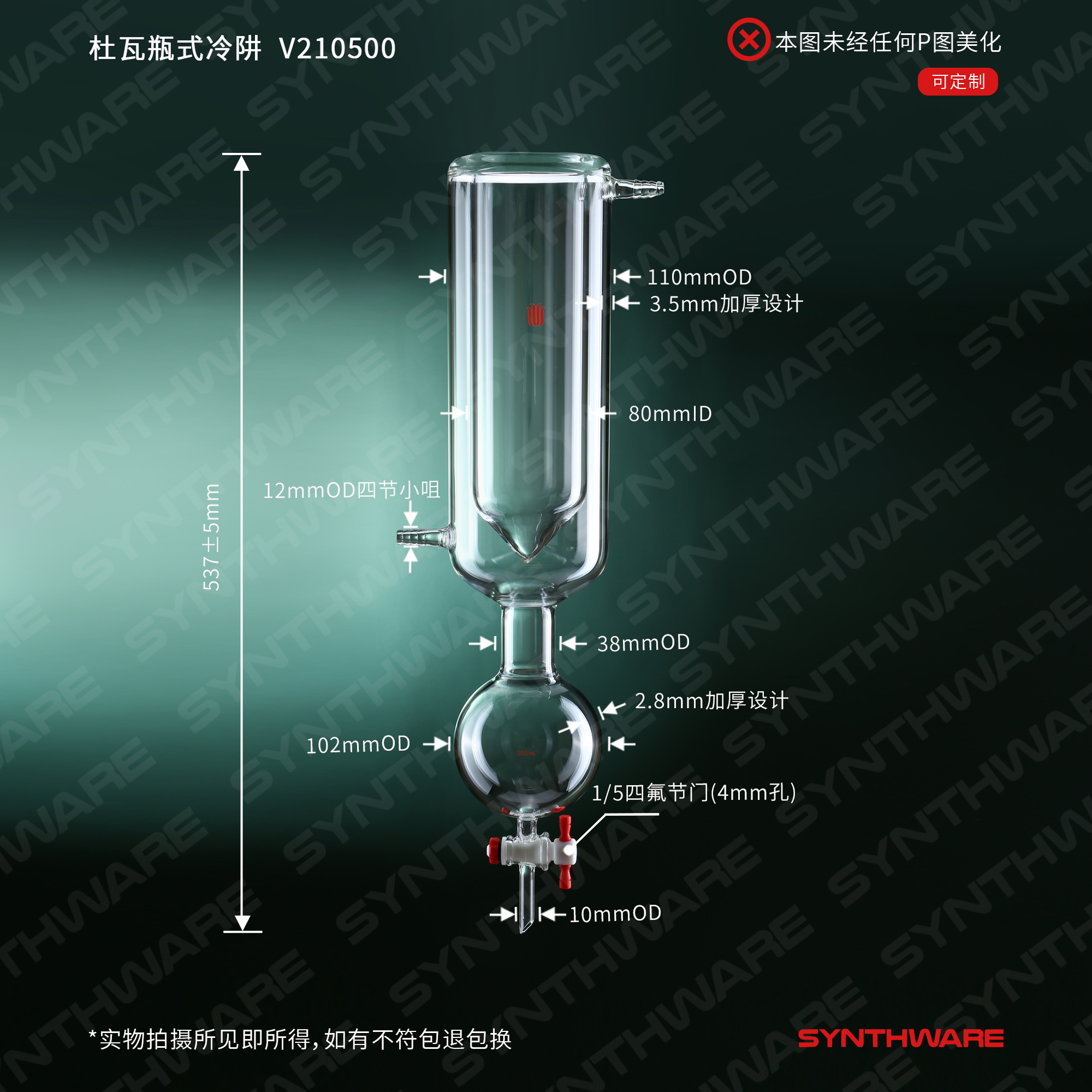 放置干冰, 杜瓦型冷阱,冷凝设计适用于大容量溶剂转移;可以选择玻璃节门达到更好的真空效果或选择四氟节门达到无油操作的目的,具10mm小咀。