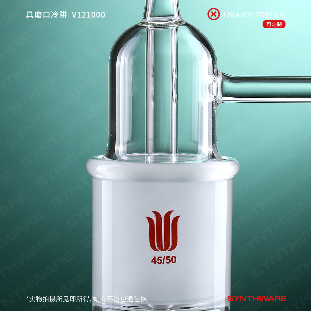 阱体为大容量设计,上下部分连接口为45/50磨口。中间导气管外径为12mm,右侧支管外径为10mm.