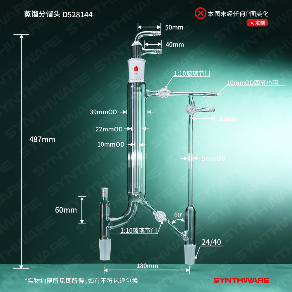蒸馏分馏头,温度计磨口:10/18,上磨口:29/42,下磨口:24/40 D528144