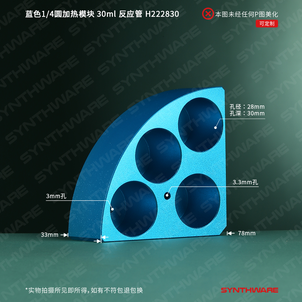 蓝色1/4圆加热模块 30ml 反应管 4孔 孔径:28mm,孔深:30mm H222830