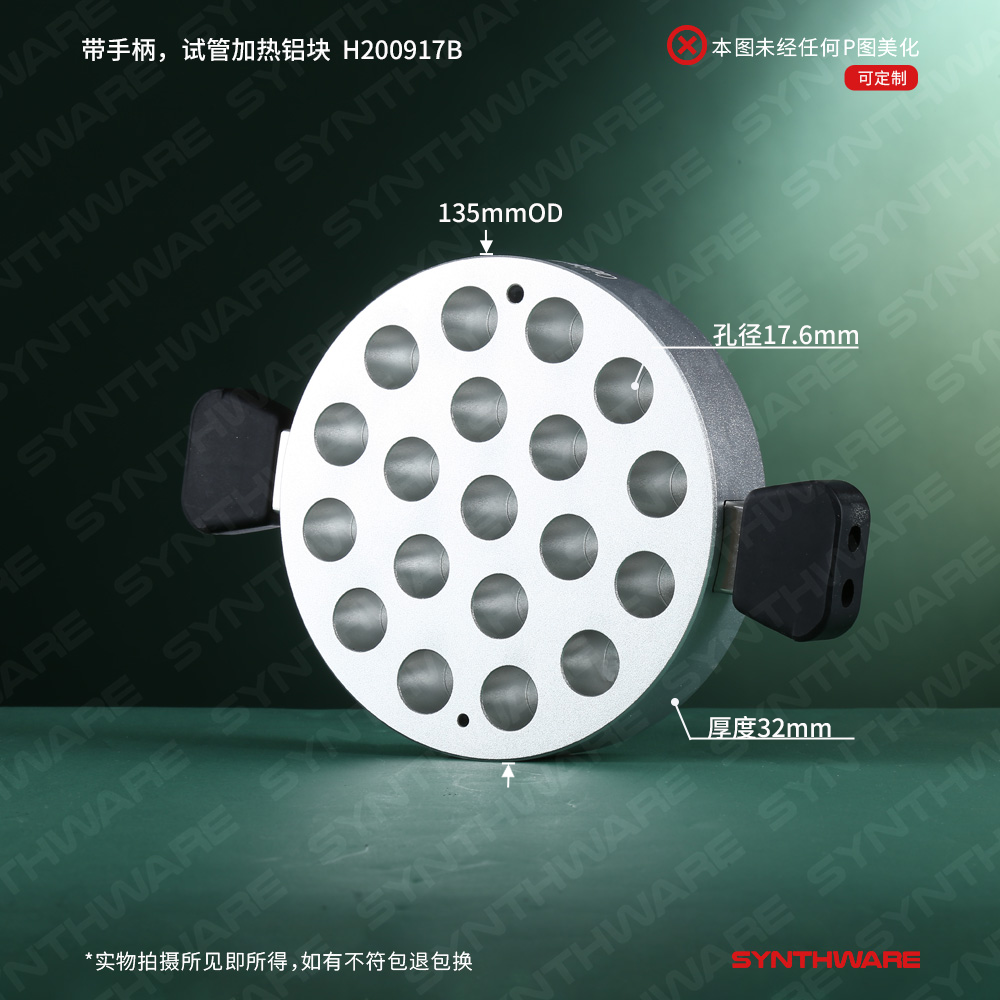 带手柄,试管加热铝块,19孔内径17.5MM,适用于8ML样品瓶 H200917B