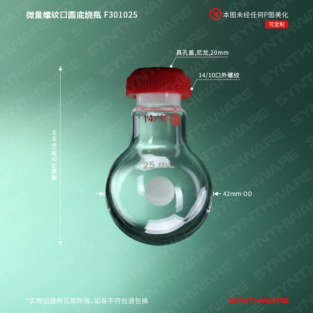微量罗纹口圆底烧瓶,14/10,25ml F301025