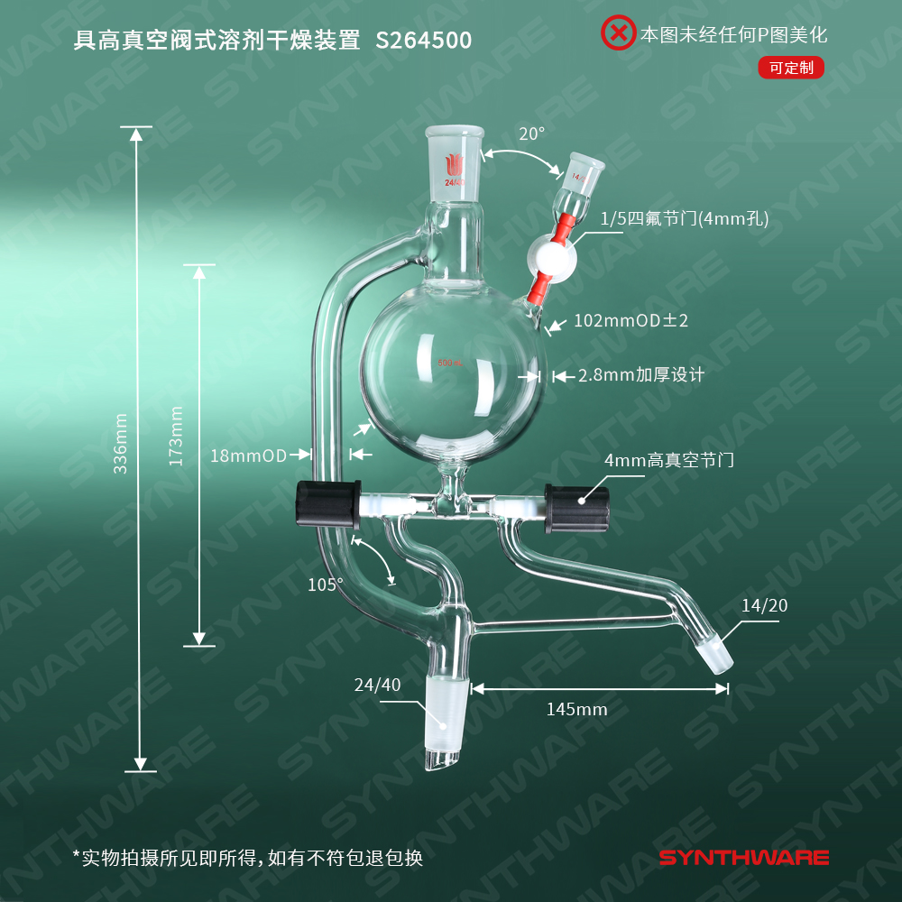 干燥类 > 装置 > 具高真空阀式溶剂干燥装置 > SYNTHWARE > 具高真空阀式溶剂干燥装置,500ml,24/40 S264500