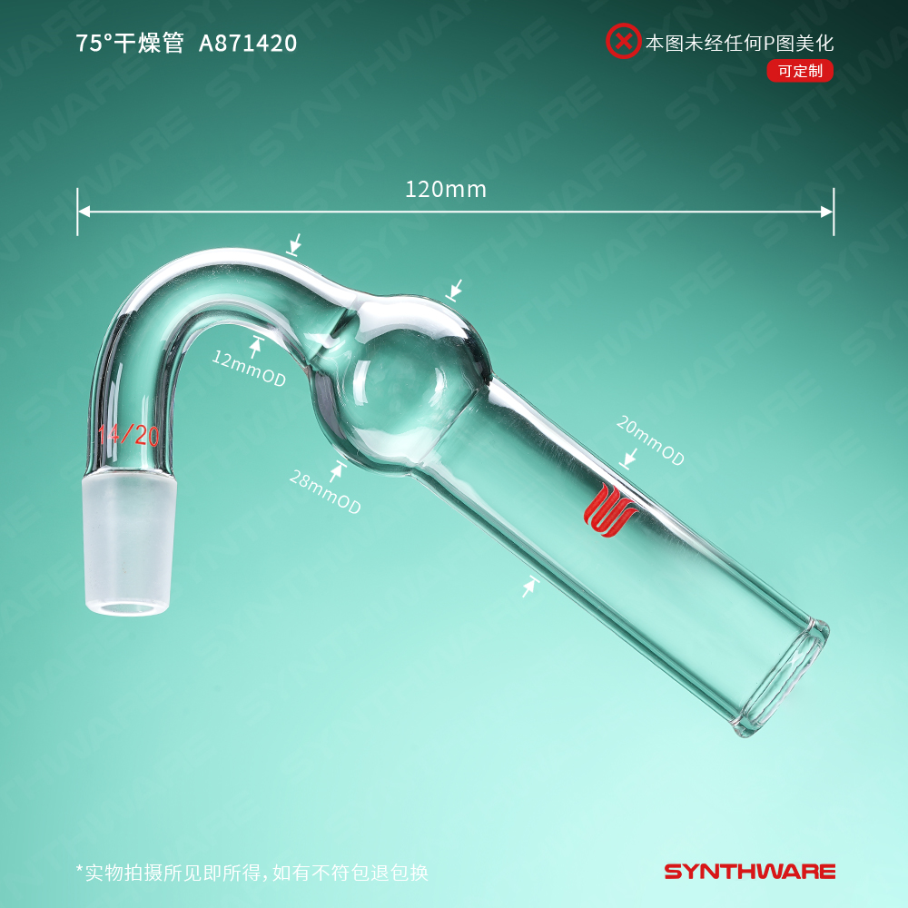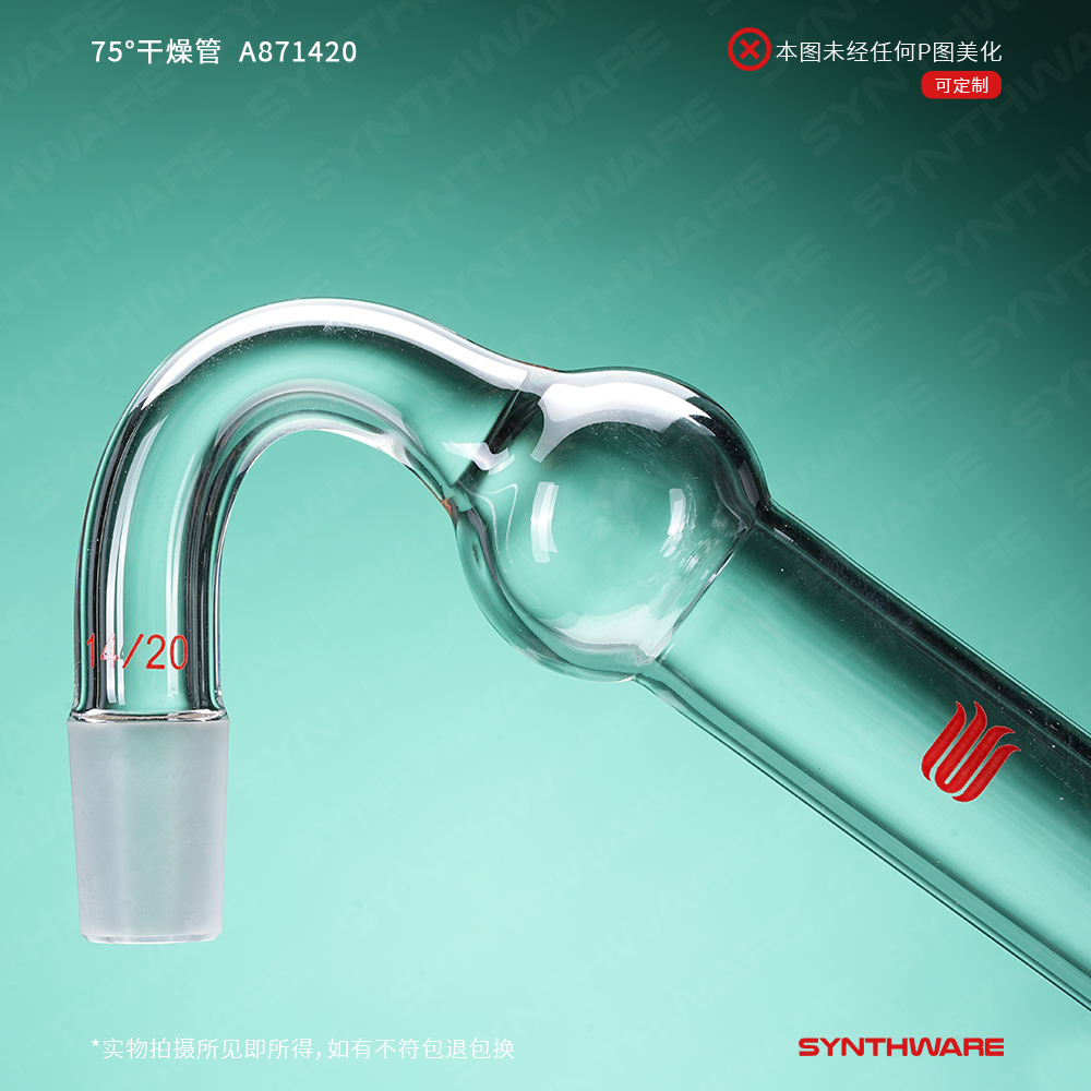 可直接与反应瓶相连,75°弯角可防止干燥剂进入反应瓶中
