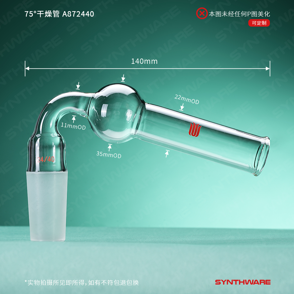 可直接与反应瓶相连,75°弯角可防止干燥剂进入反应瓶中