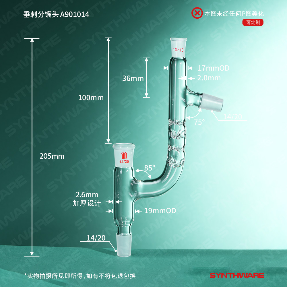垂刺分馏头,温度计磨口:10/18,其它磨口:14/20 A901014