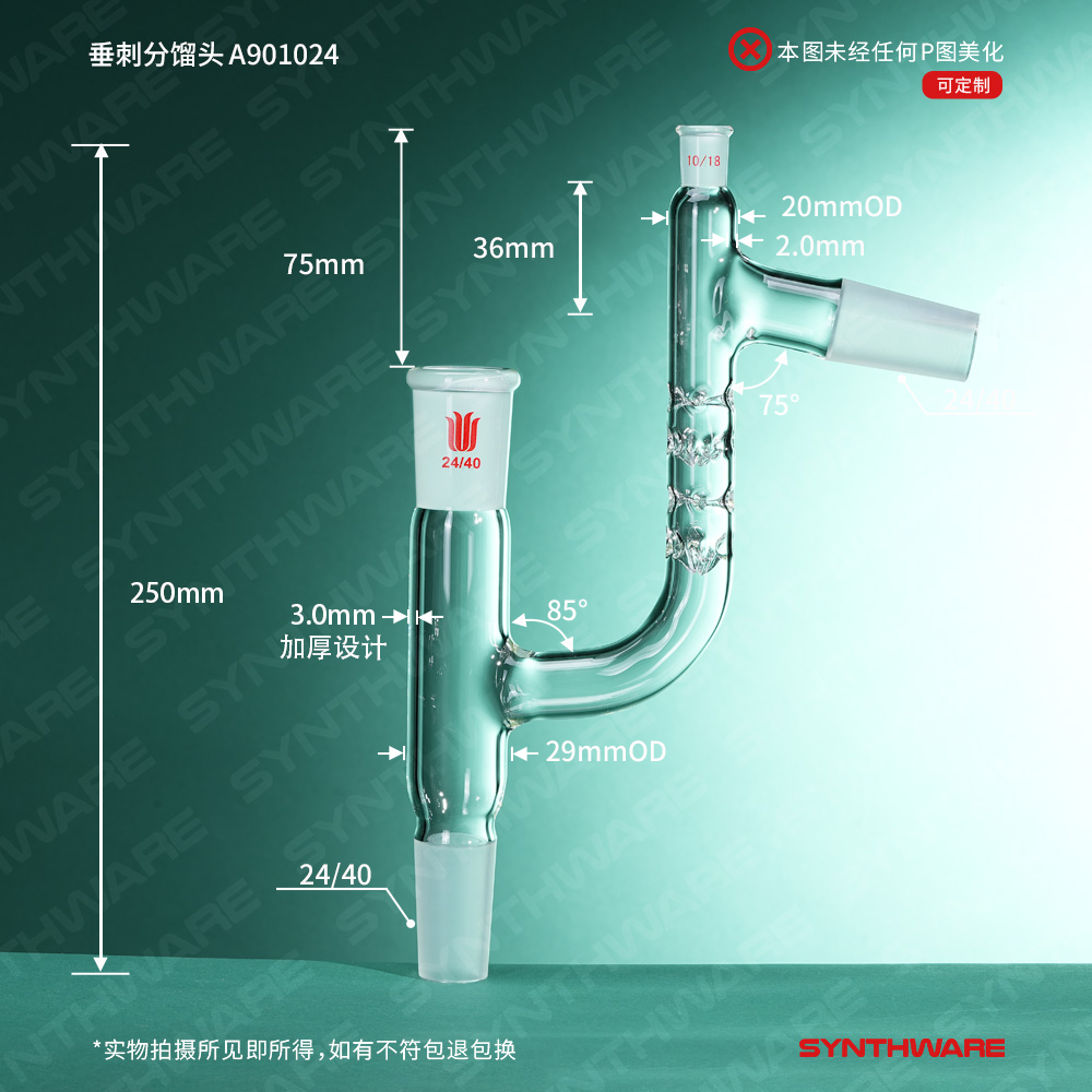 垂刺分馏头,温度计磨口:10/18,其它磨口:24/40 A901024