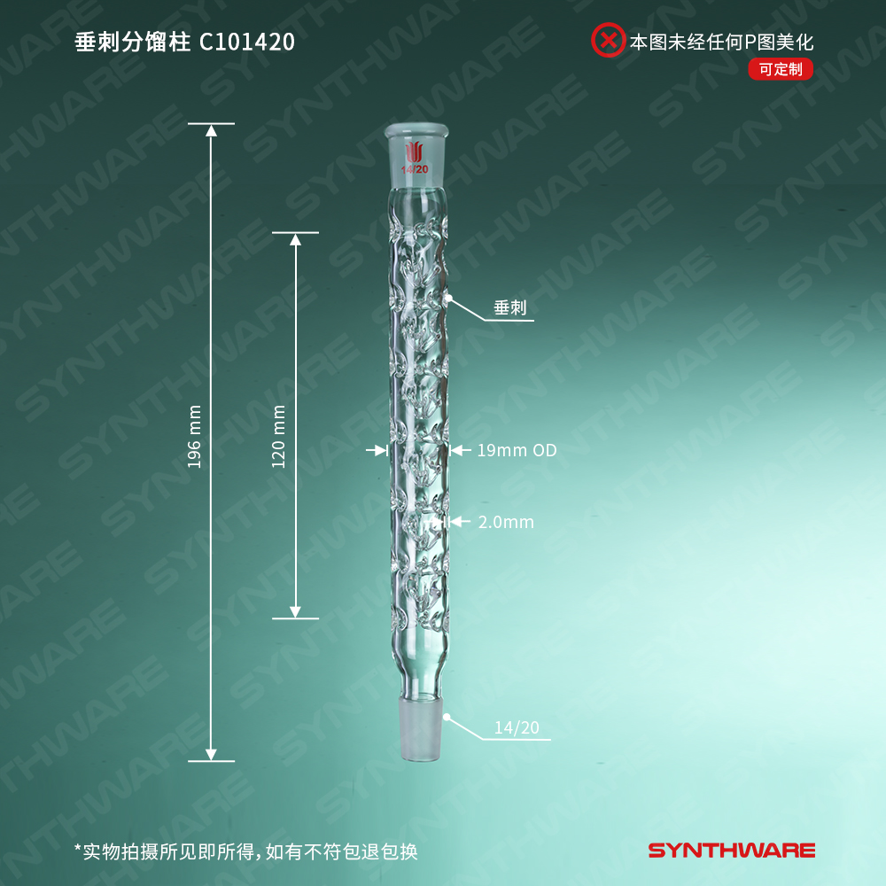 分馏类 > 分馏柱 > 垂刺分馏柱 > SYNTHWARE > 垂刺分馏柱,长度:120mm,磨口:14/20 C101420