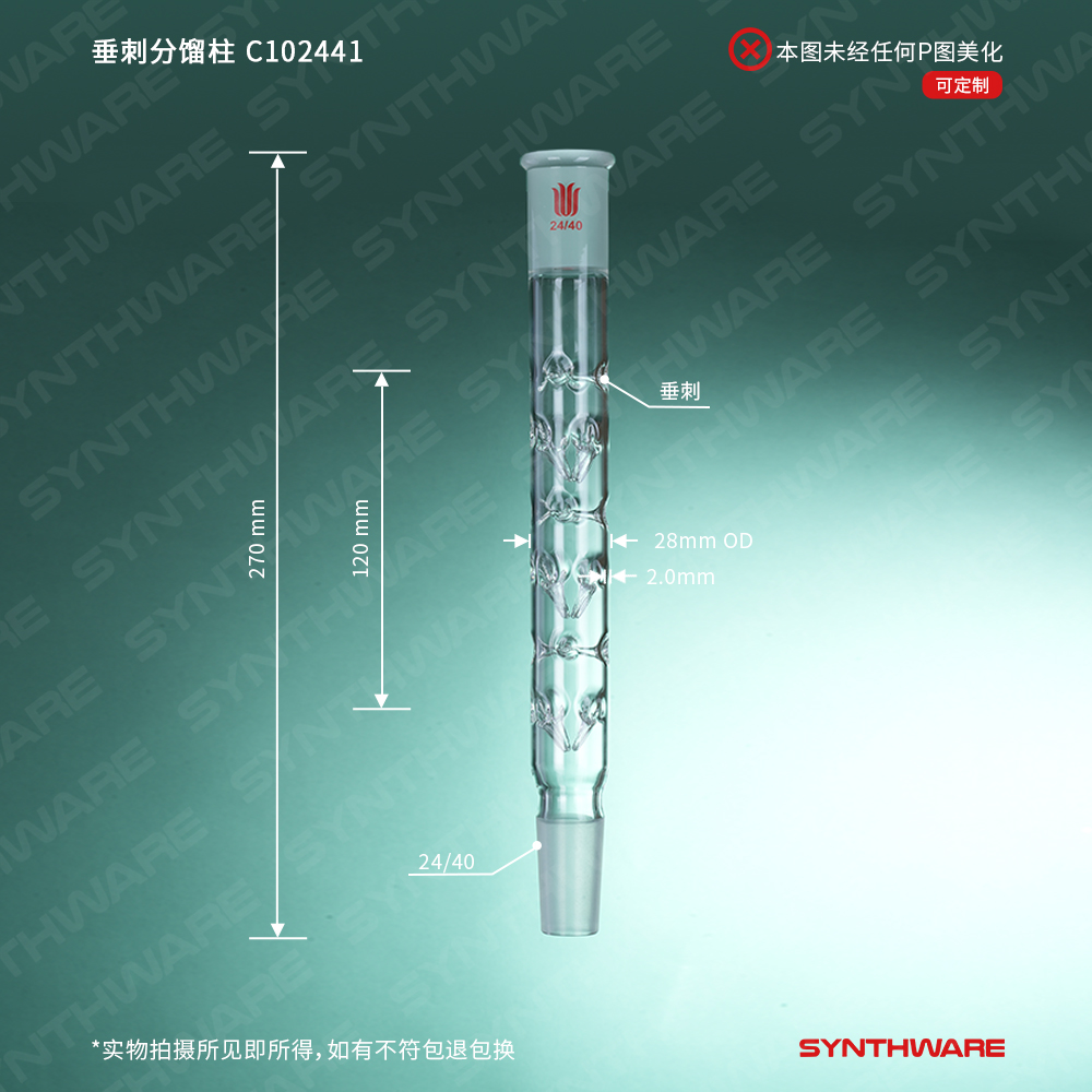 分馏类 > 分馏柱 > 垂刺分馏柱 > SYNTHWARE > 垂刺分馏柱,长度:120mm,磨口:24/40 C102441