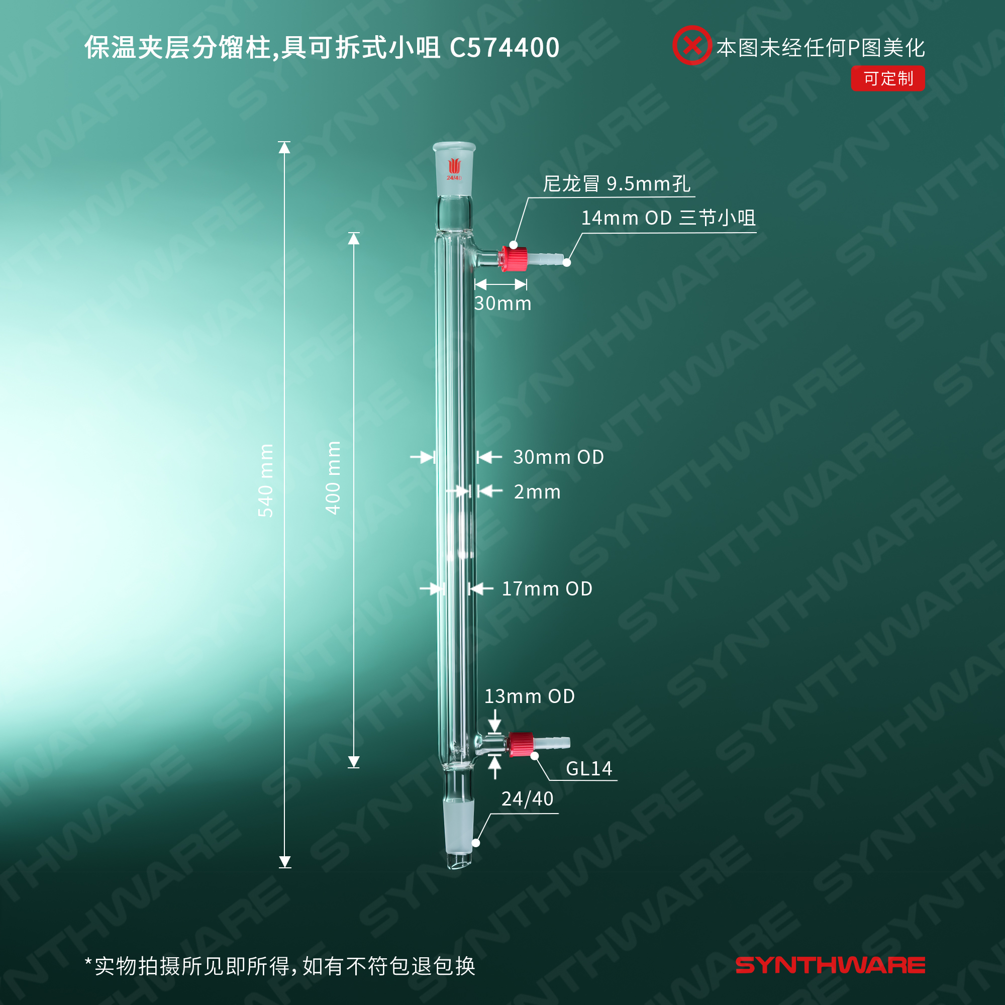 保温夹层分馏柱,具可拆式小咀,24/40,冷凝部分长400mm C574400