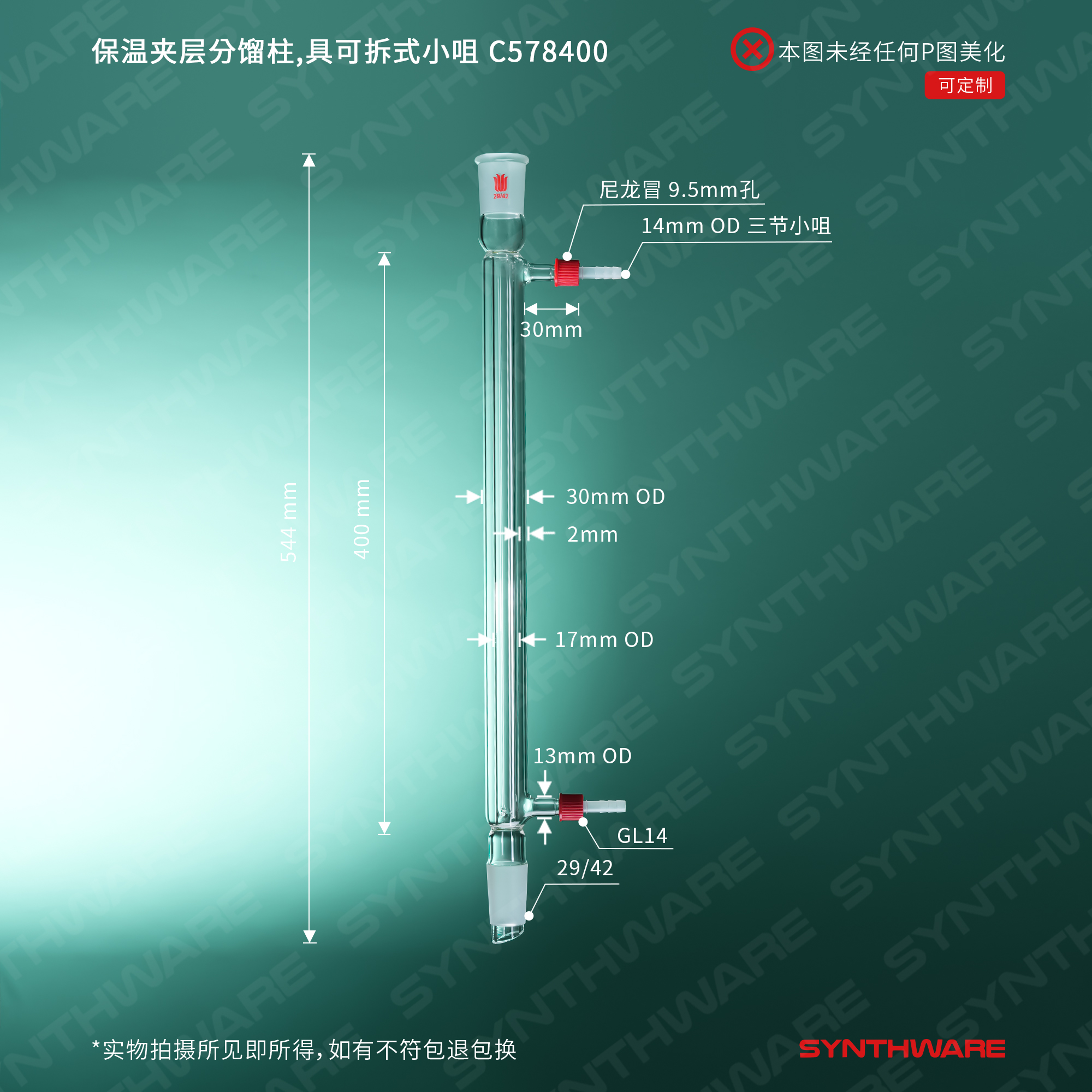 保温夹层分馏柱,具可拆式小咀,29/42,冷凝部分长400mm C578400