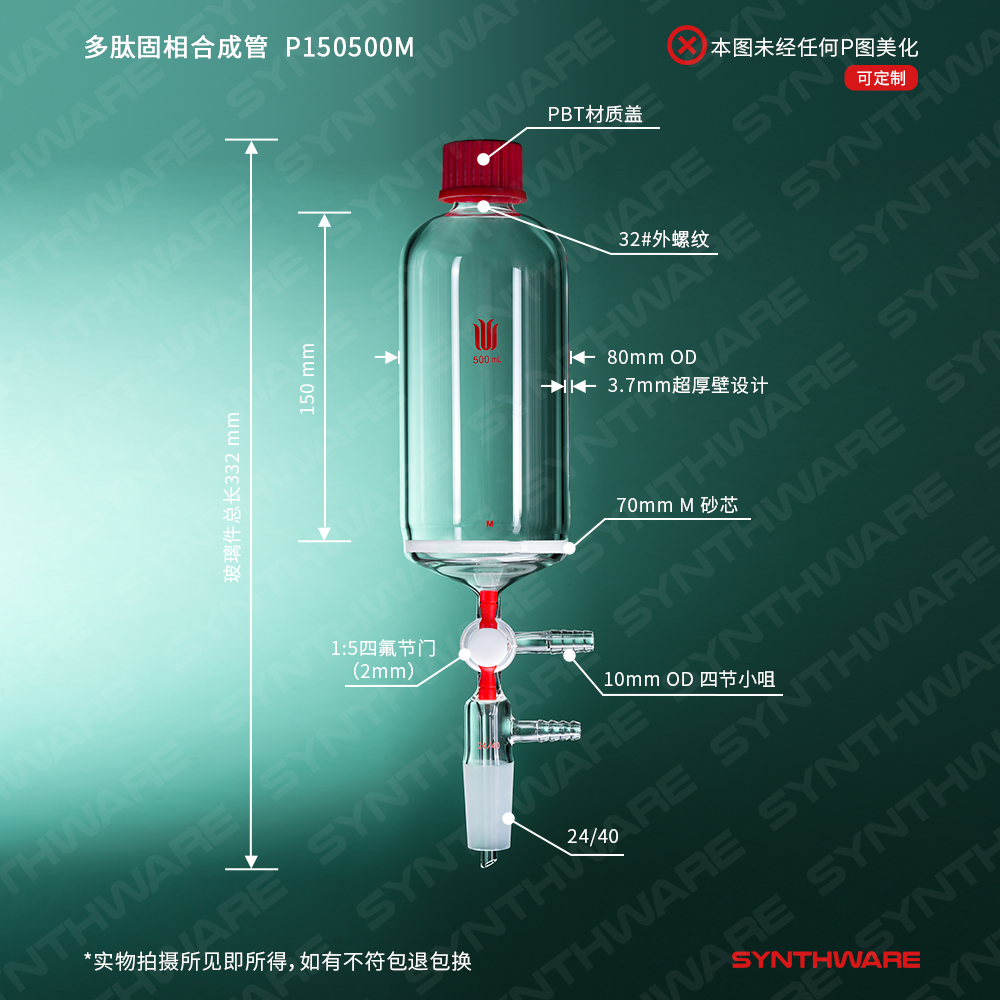 一体式多肽固相合成.夹套双层.32#外螺纹,G3(M)砂芯,500ml P350500M
