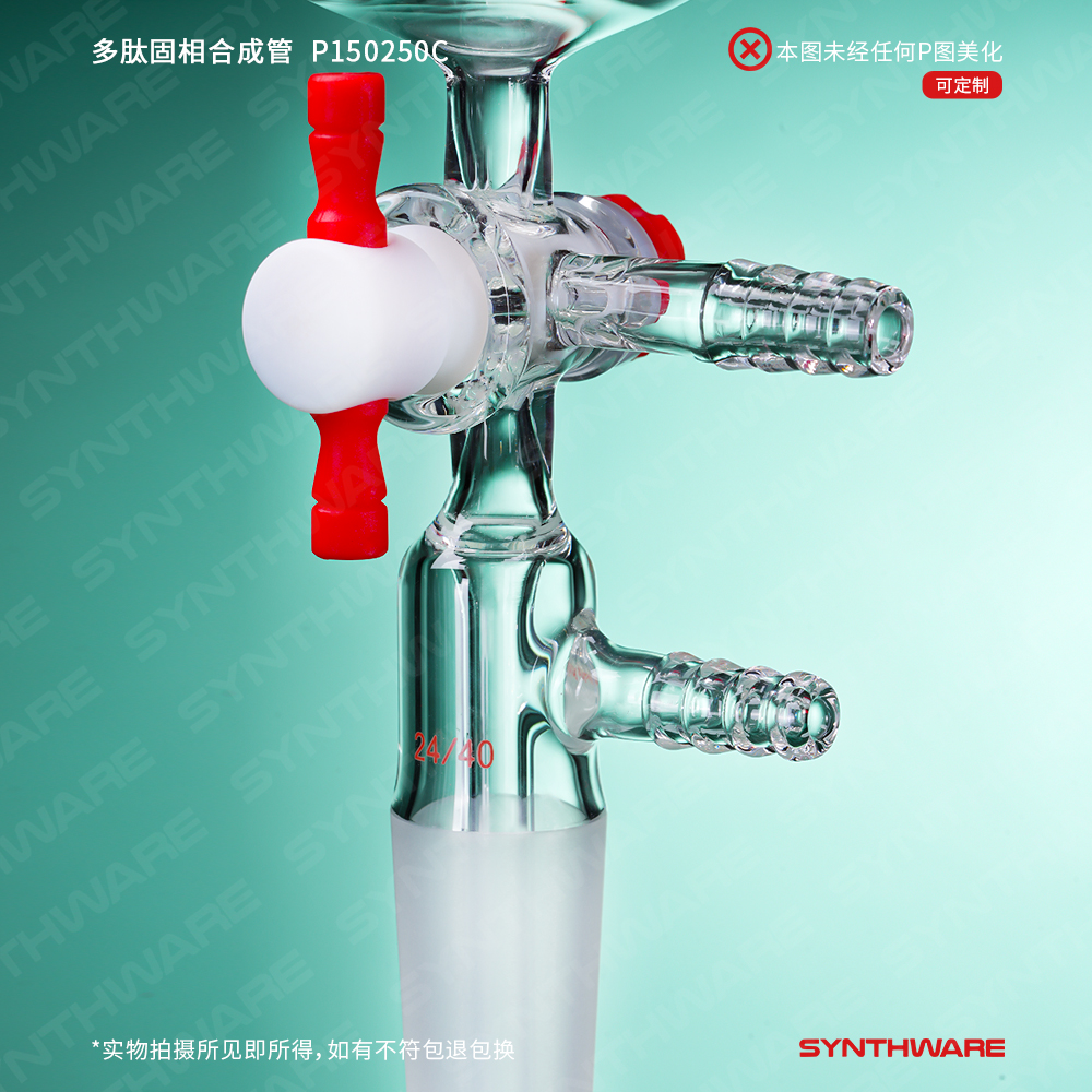 多肽固相合成管,T型四氟节门,小咀,24/40外磨口,100ml,25#,G2 P150100C
