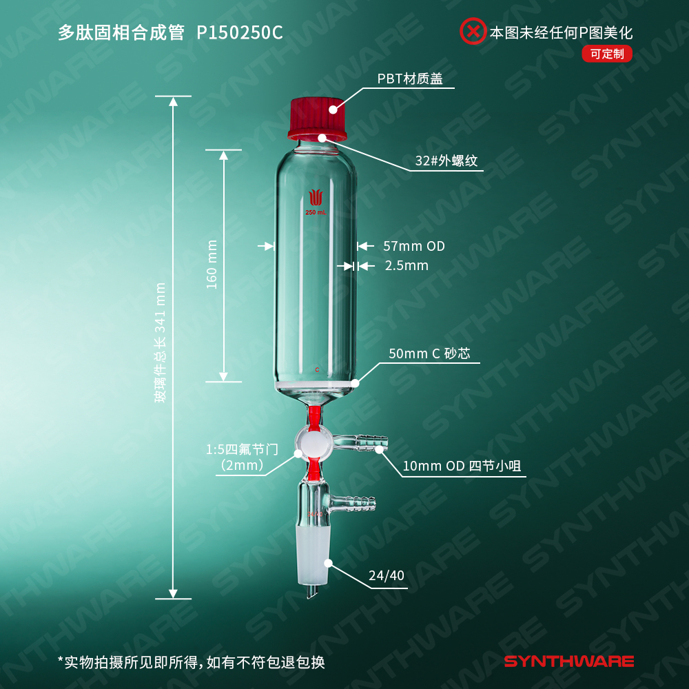 一体式多肽固相合成.夹套双层.32#外螺纹,G3(M)砂芯,250ml P350250M