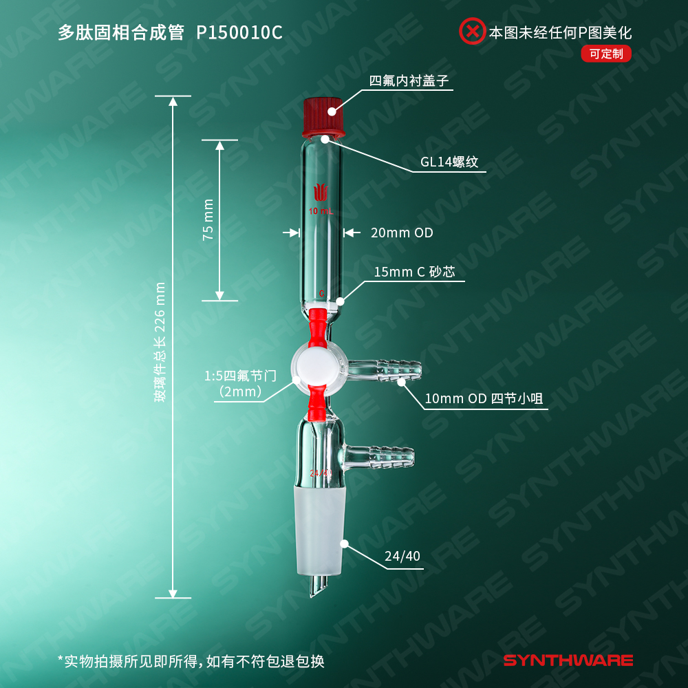多肽固相合成管,T型四氟节门,小咀,24/40外磨口,10ml,14#,G2 P150010C