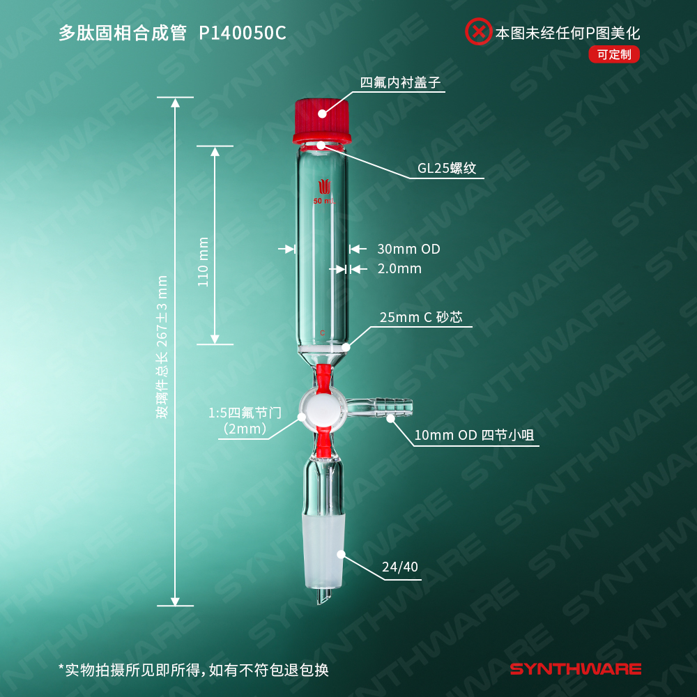 多肽固相合成管,T型四氟节门,小咀,24/40外磨口,50ml,25#,G2 P150050C