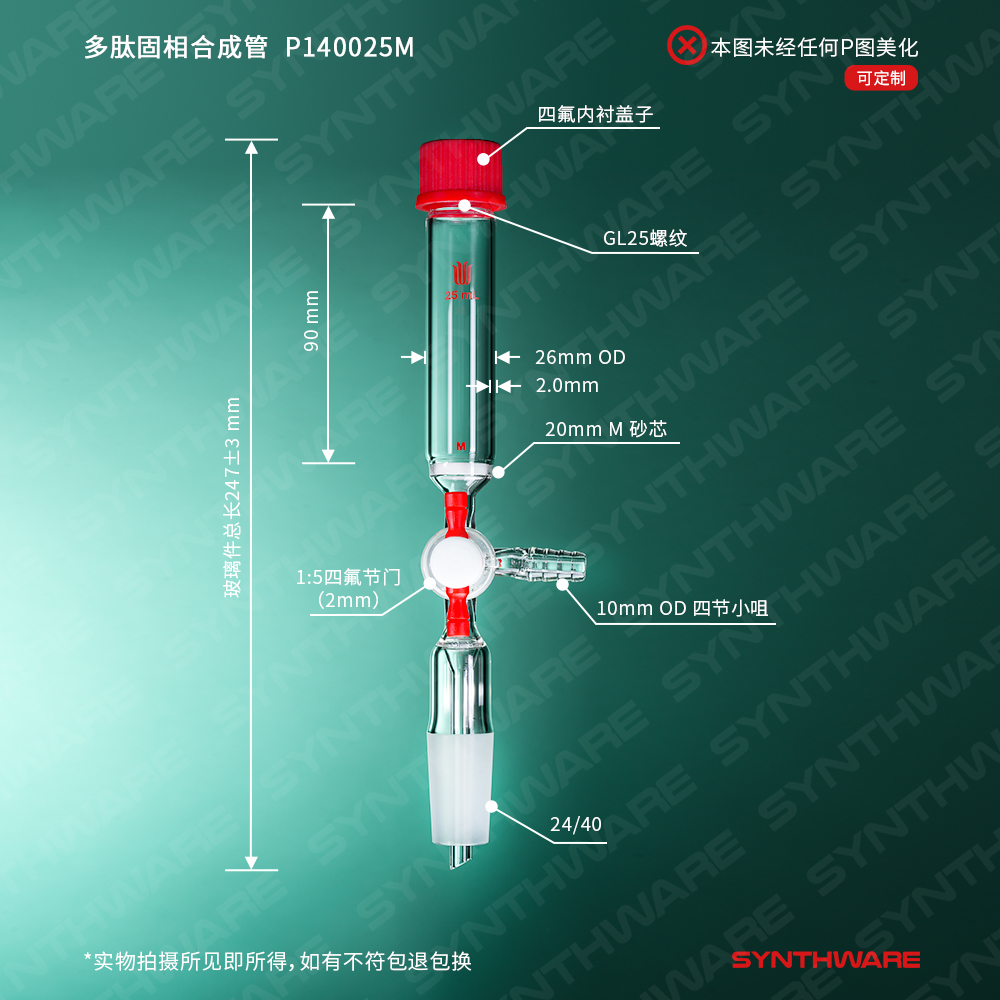 多肽固相合成管,T型四氟节门,24/40外磨口,25ml,25#,G3 P140025M