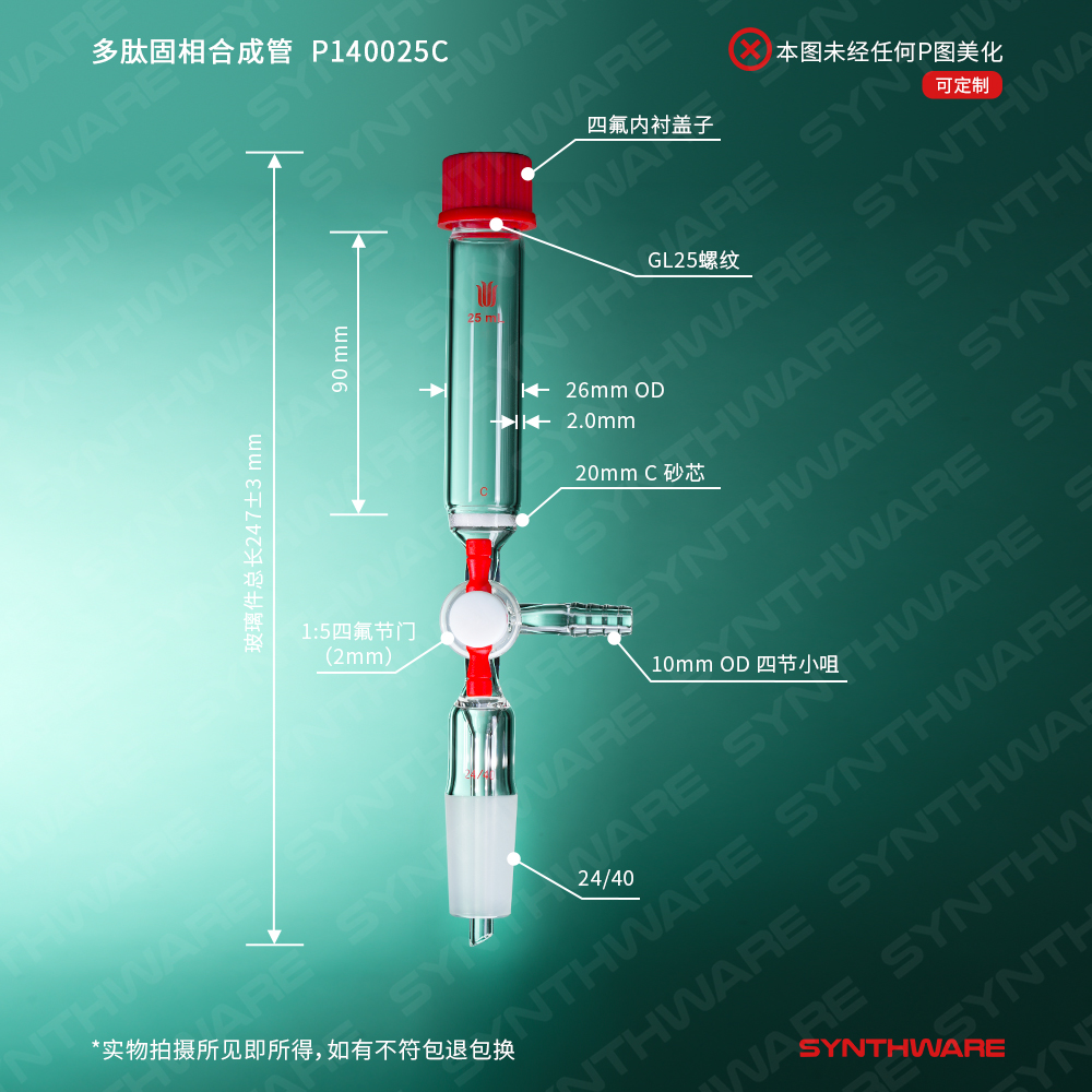 多肽固相合成管,T型四氟节门,24/40外磨口,25ml,25#,G3 P140025M