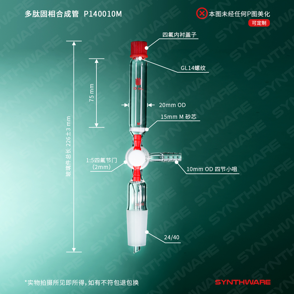 多肽固相合成管,T型四氟节门,小咀,24/40外磨口,10ml,14#,G2 P150010C