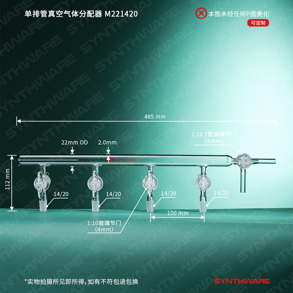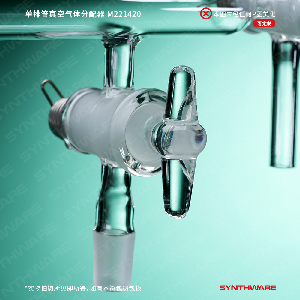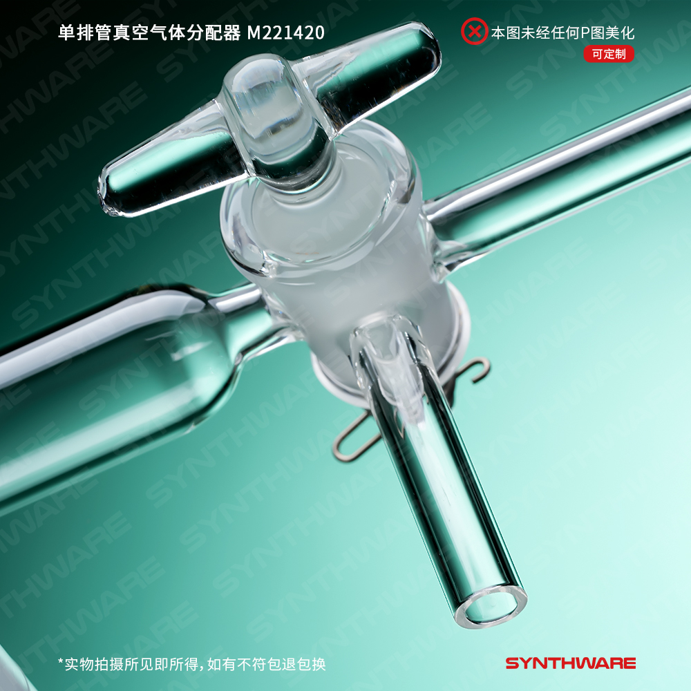 4组4mm孔的实心玻璃节门和外磨口,位于主管右侧有一组4mm “T”型孔玻璃节门。