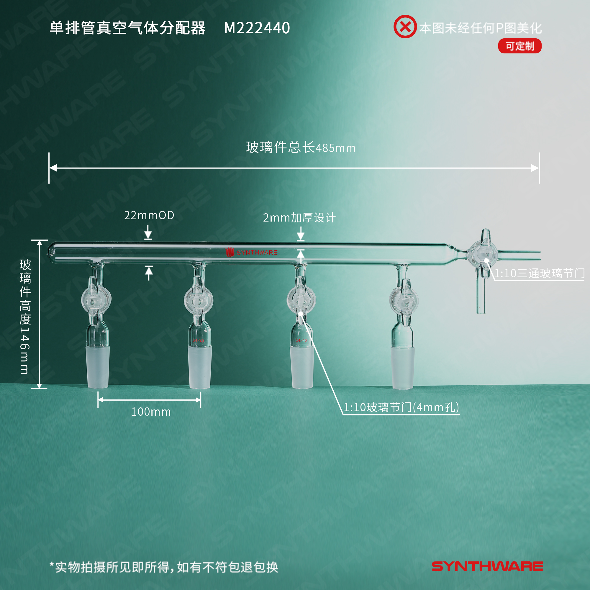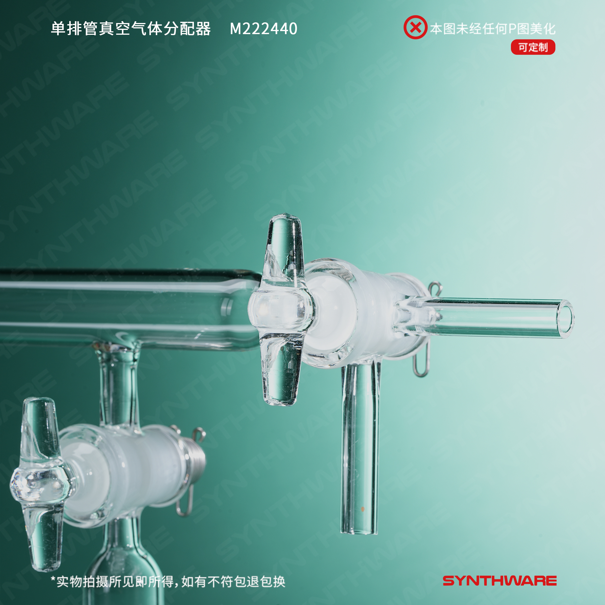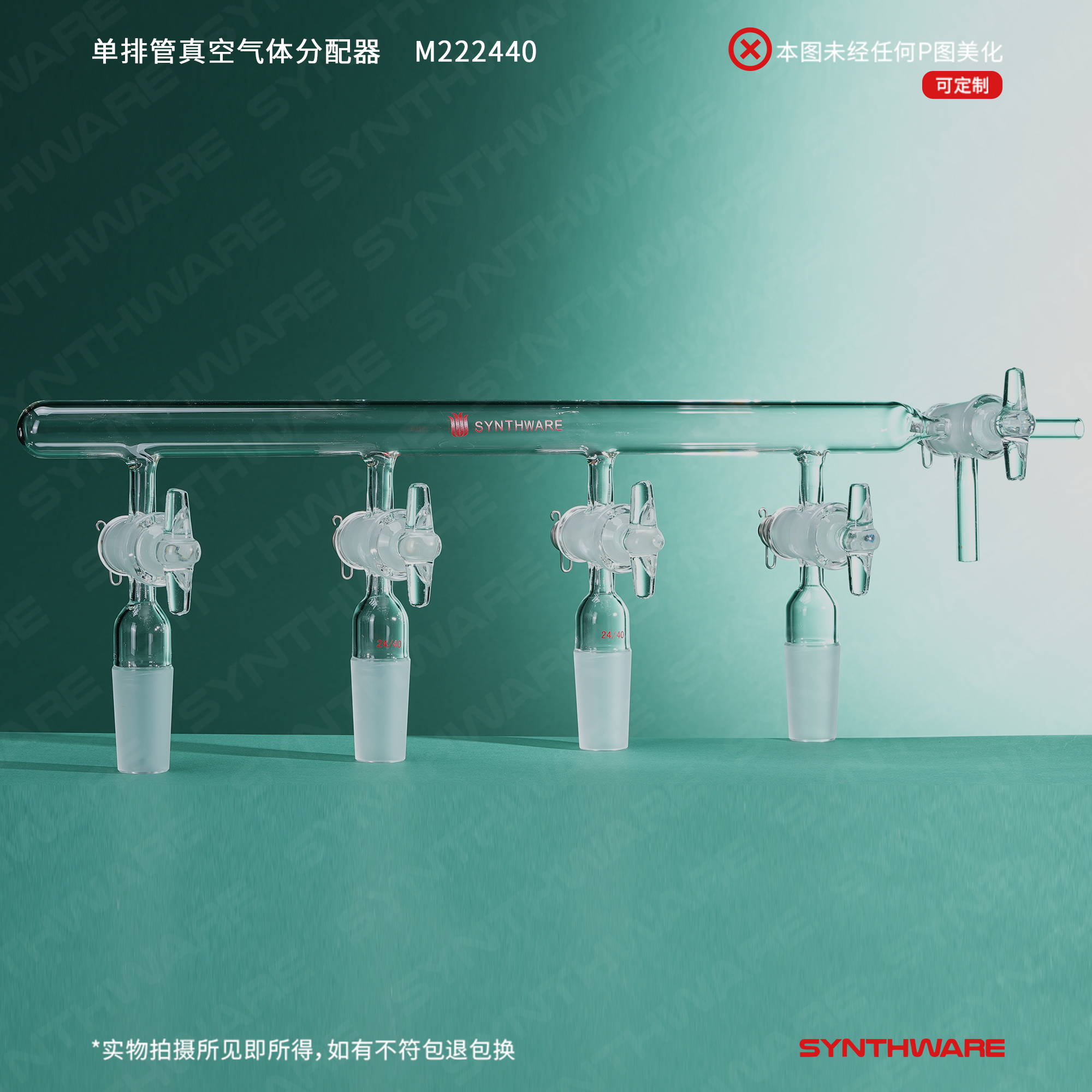 4组4mm孔的实心玻璃节门和外磨口,位于主管右侧有一组4mm “T”型孔玻璃节门。