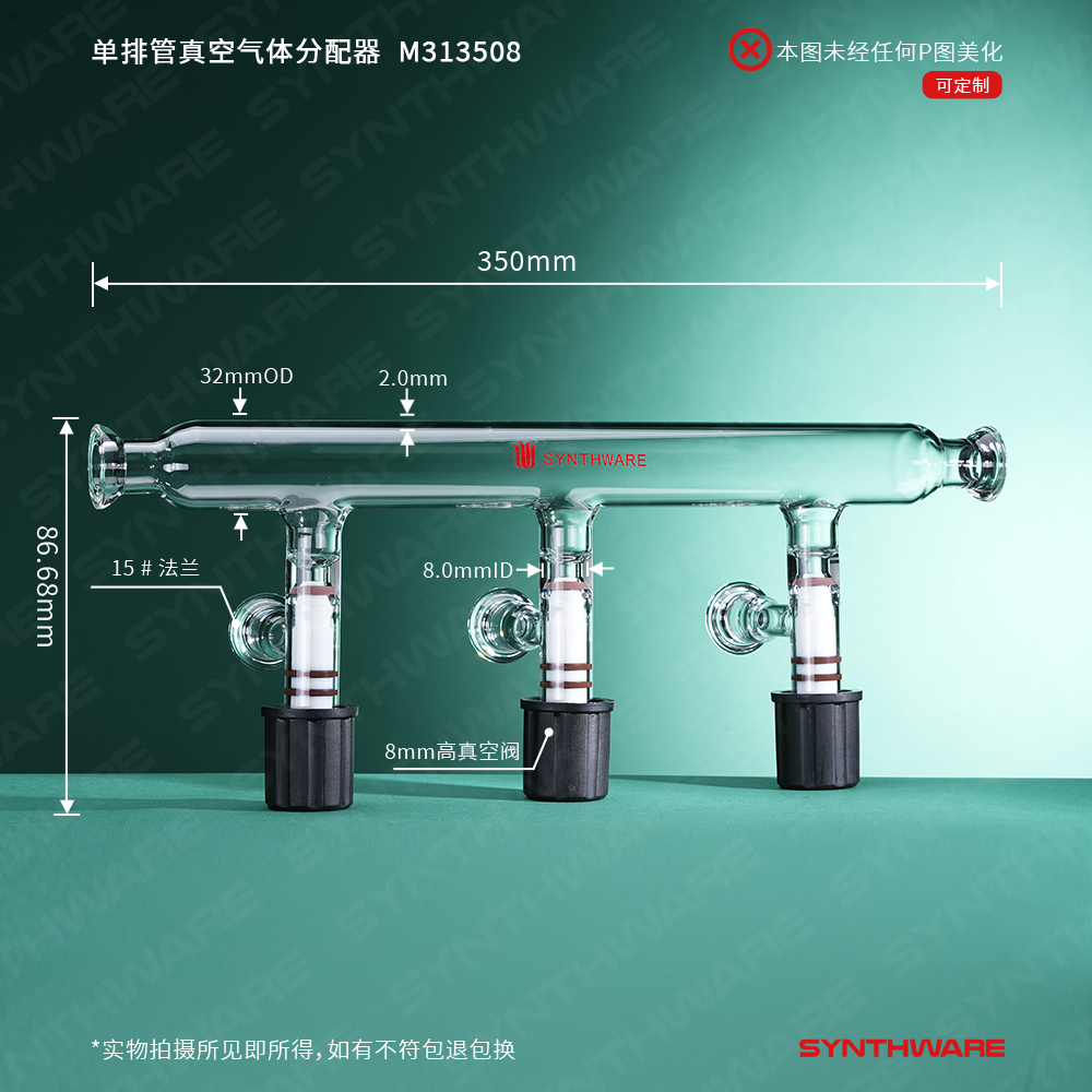 单排管真空气体分配器,3组,8mm高真空阀,6个#15 O型珐琅盘 M313508