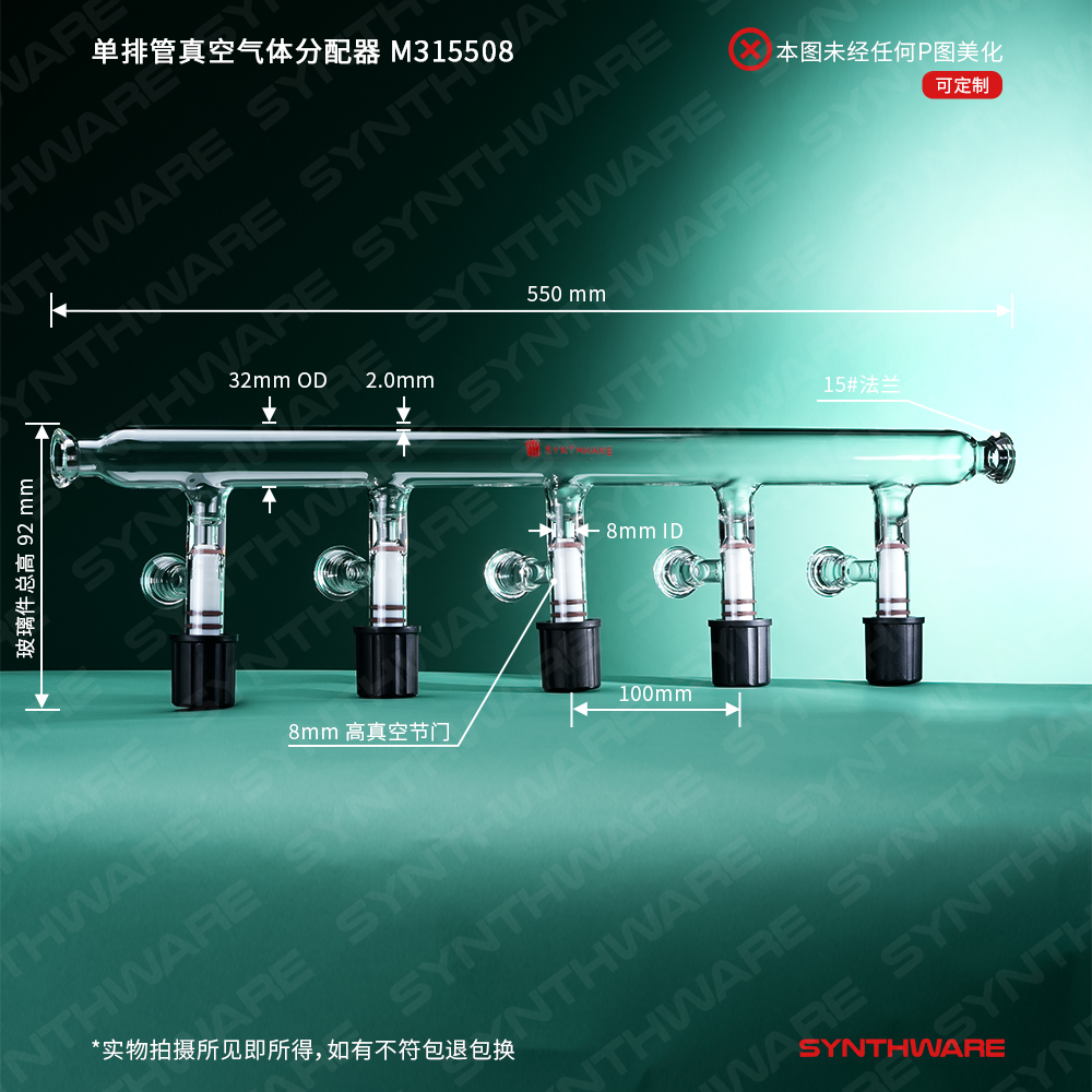 单排管真空气体分配器,5组,8mm高真空阀,6个#15 O型珐琅盘 M315508