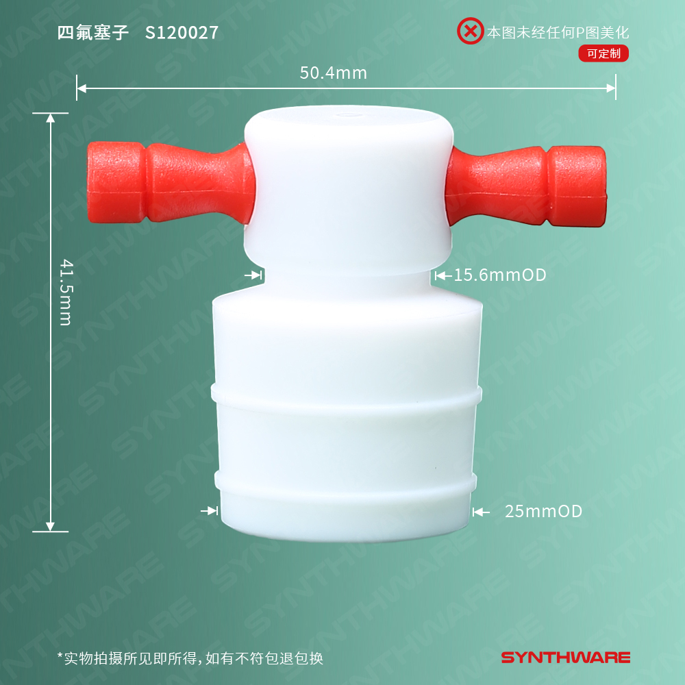 1:5直孔四氟塞,15.2/30,4mm,红色手柄&螺母 S181530