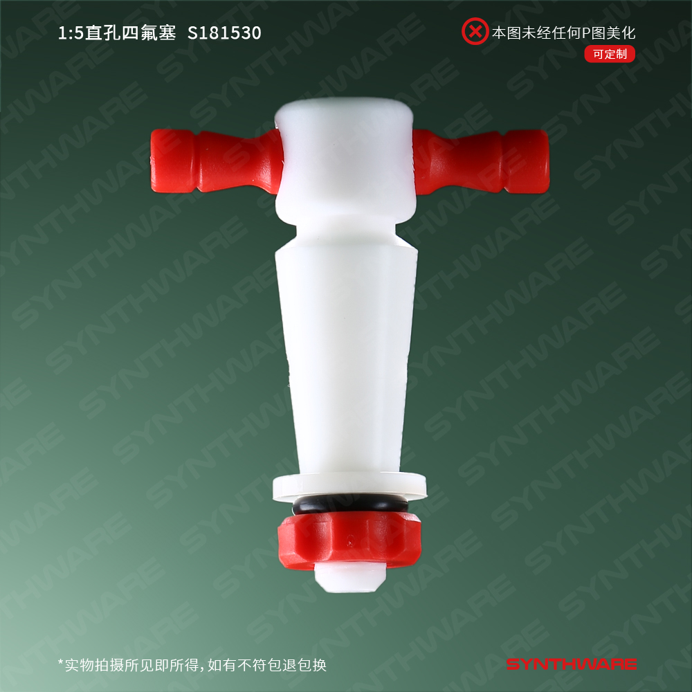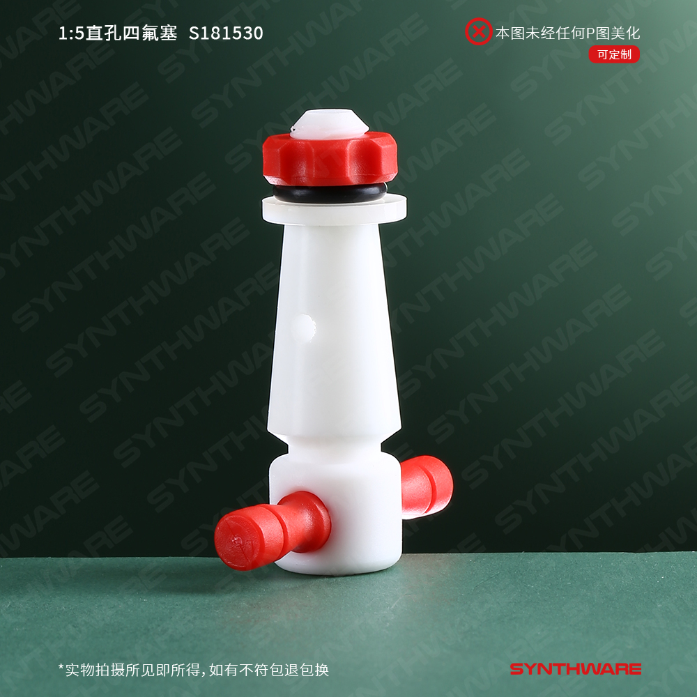 1:5直孔四氟塞,15.2/30,4mm,红色手柄&螺母 S181530