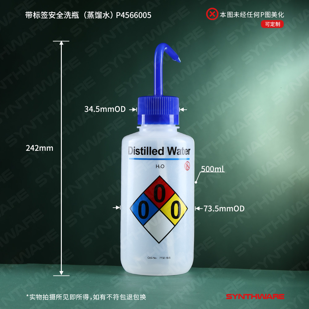 辅助/耗材 > 洗瓶 > 带标签安全洗瓶 > SYNTHWARE > 带标签安全洗瓶(蒸馏水)LDPE 500ml P4566005