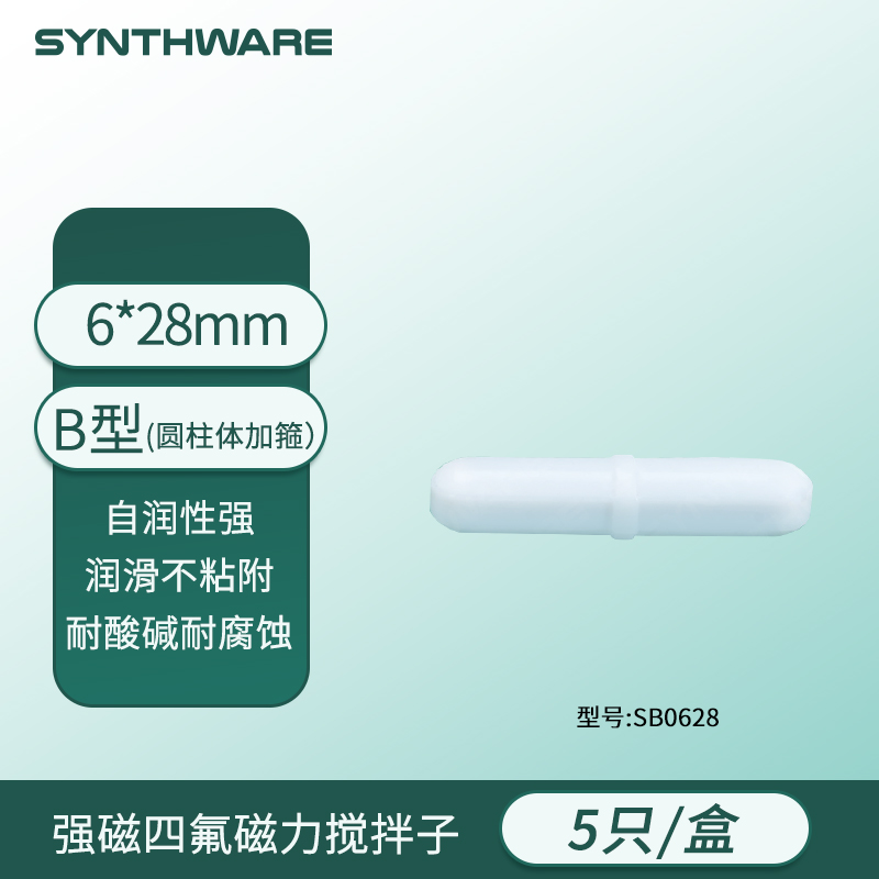 四氟磁力搅拌子,(圆柱体加箍)B9*28mm 5个/袋 SB0928-5