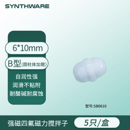 四氟磁力搅拌子B5*10mm(圆柱体加箍)5只/盒 SB0510