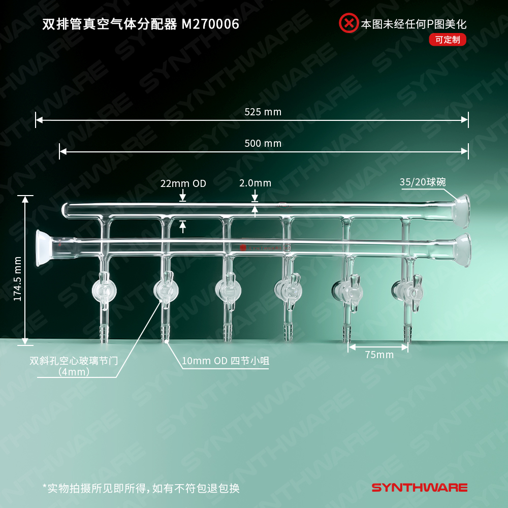 双排管真空气体分配器,空心玻璃节门,6,525mm,3球碗,左右前右后 M270006