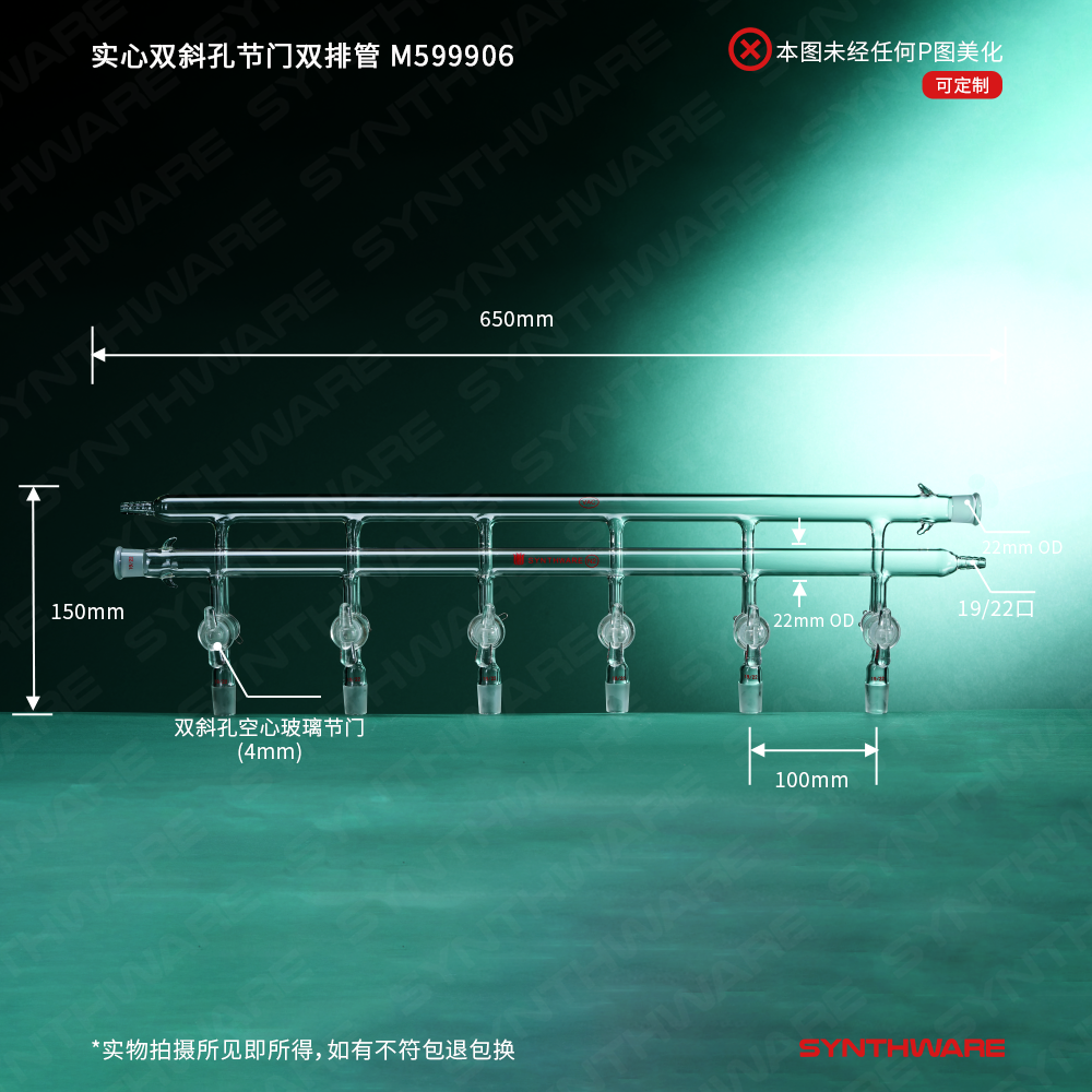 双排管真空气体分配器(实心节门塞),6组,横梁前左后右为10mm小咀,前右后左为19/22磨口 M370006