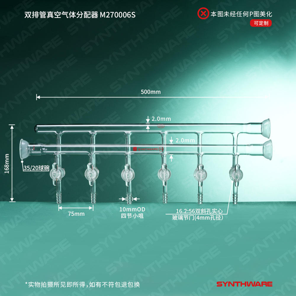 双排管真空气体分配器,实心玻璃节门,6,525mm,3球碗,左右前右后 M270006S