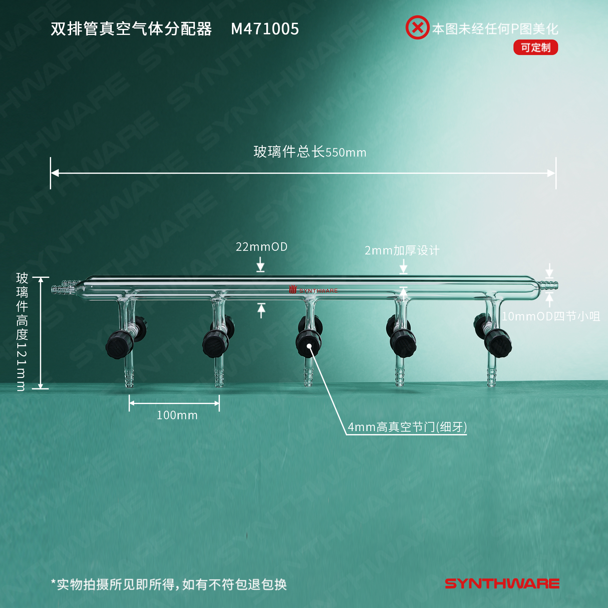 双排管真空气体分配器,具高真空阀,5,550mm,4小咀 M111005