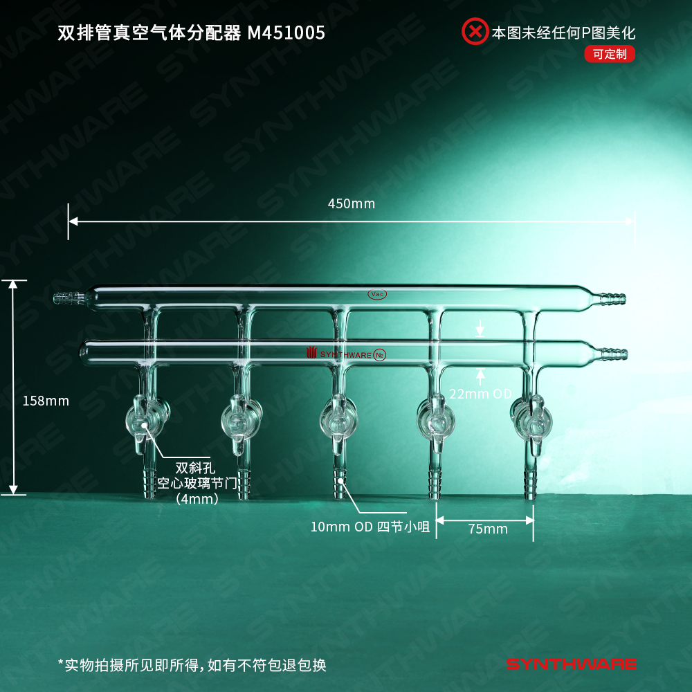 双排管真空气体分配器,空心玻璃节门,5,450mm,4小咀 M411005