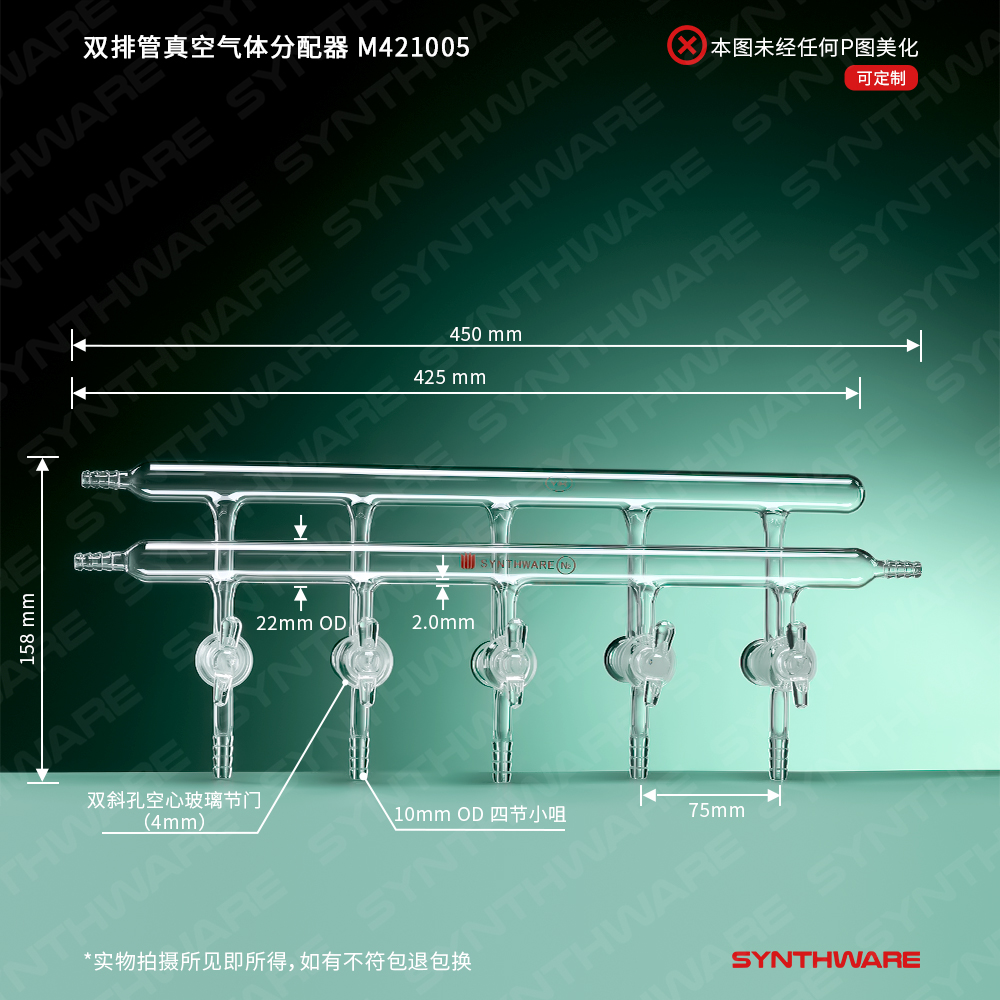 双排管真空气体分配器,空心玻璃节门,5,450mm,4小咀 M411005