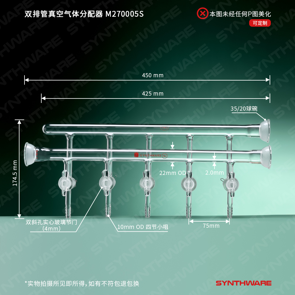 双排管真空气体分配器,实心玻璃节门,5,450mm,3球碗,左右前右后 M270005S