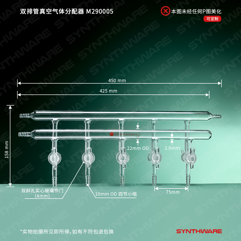 双排管真空气体分配器,实心玻璃节门,5,450mm,4小咀 M250005