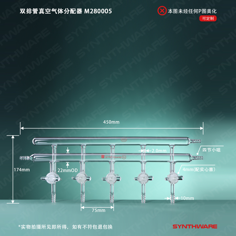 双排管真空气体分配器,实心玻璃节门,5,450mm,4小咀 M250005