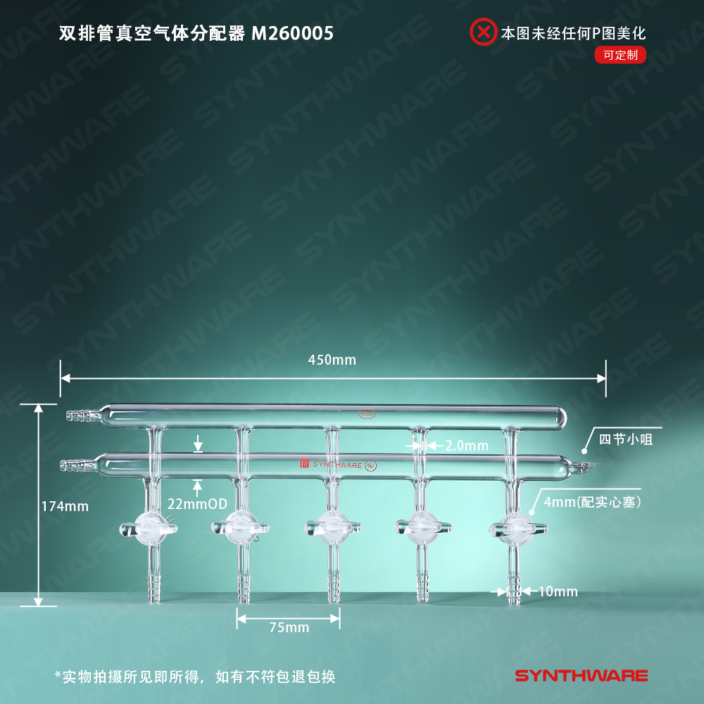 双排管真空气体分配器,实心玻璃节门,5,450mm,4小咀 M250005
