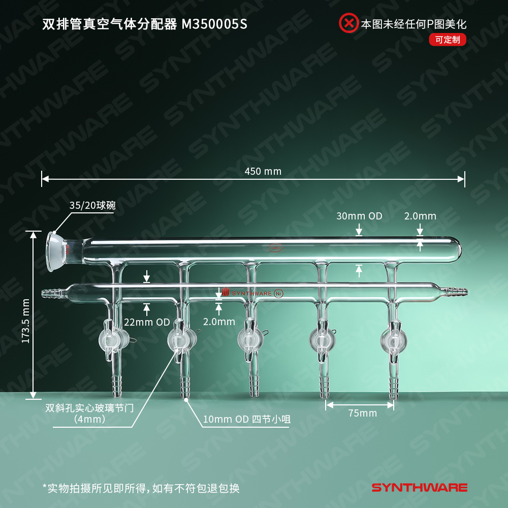 双排管真空气体分配器,实心玻璃节门,5,450mm,3球碗,左右前右后 M270005S
