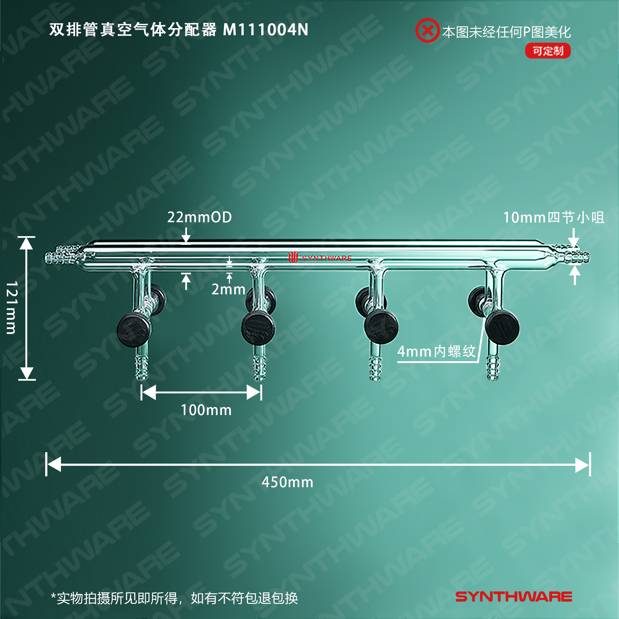 双排管真空气体分配器,具内螺纹高真空阀,4,450mm,4小咀 M111004N