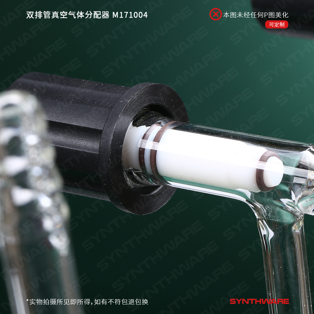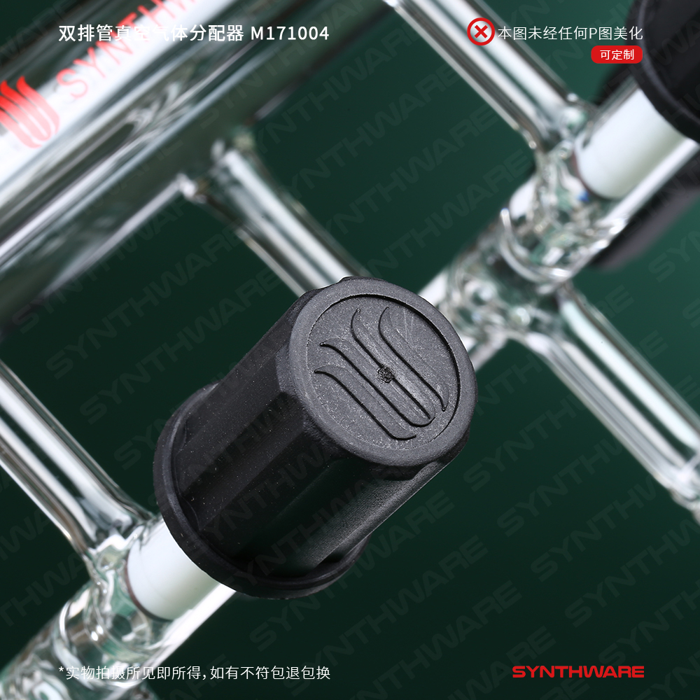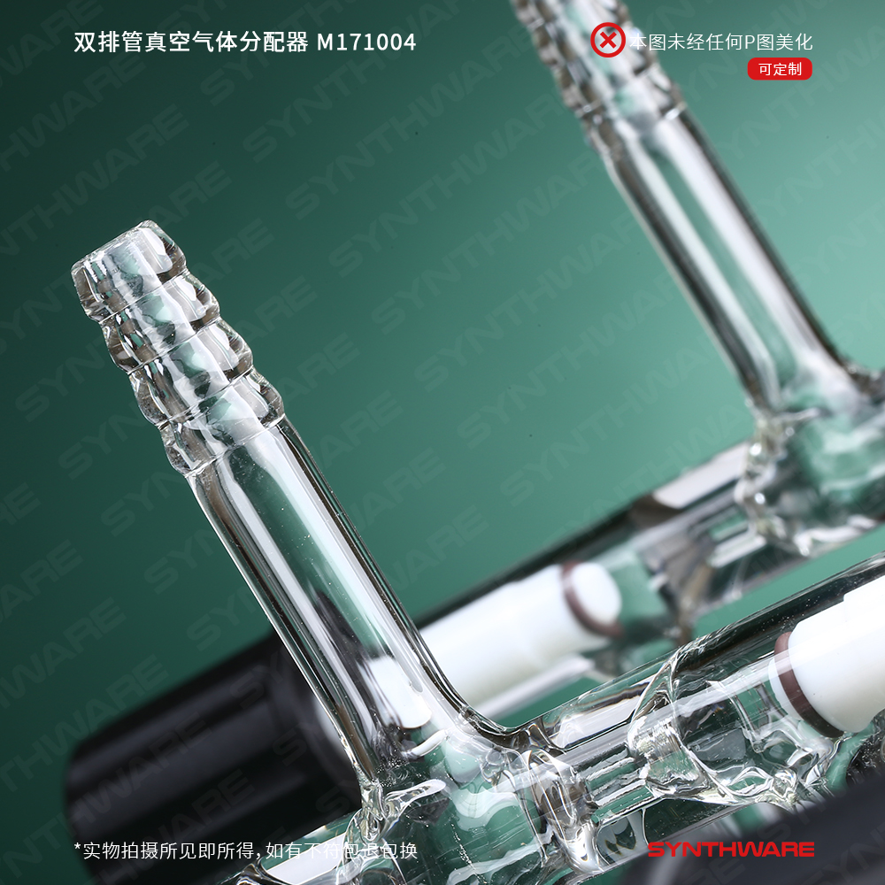 用于反应体系的惰性气体保护,一个管为真空抽气管,另一个管为惰性气体加入管,两个管以三通节门相连,从而控制真空和气体依次进入需保护的瓶中。双排管有不同的规格,可同时进行多组保护反应。该双排管配有0-4mm高真空节门。前管左端及后管右端为11mm小咀。