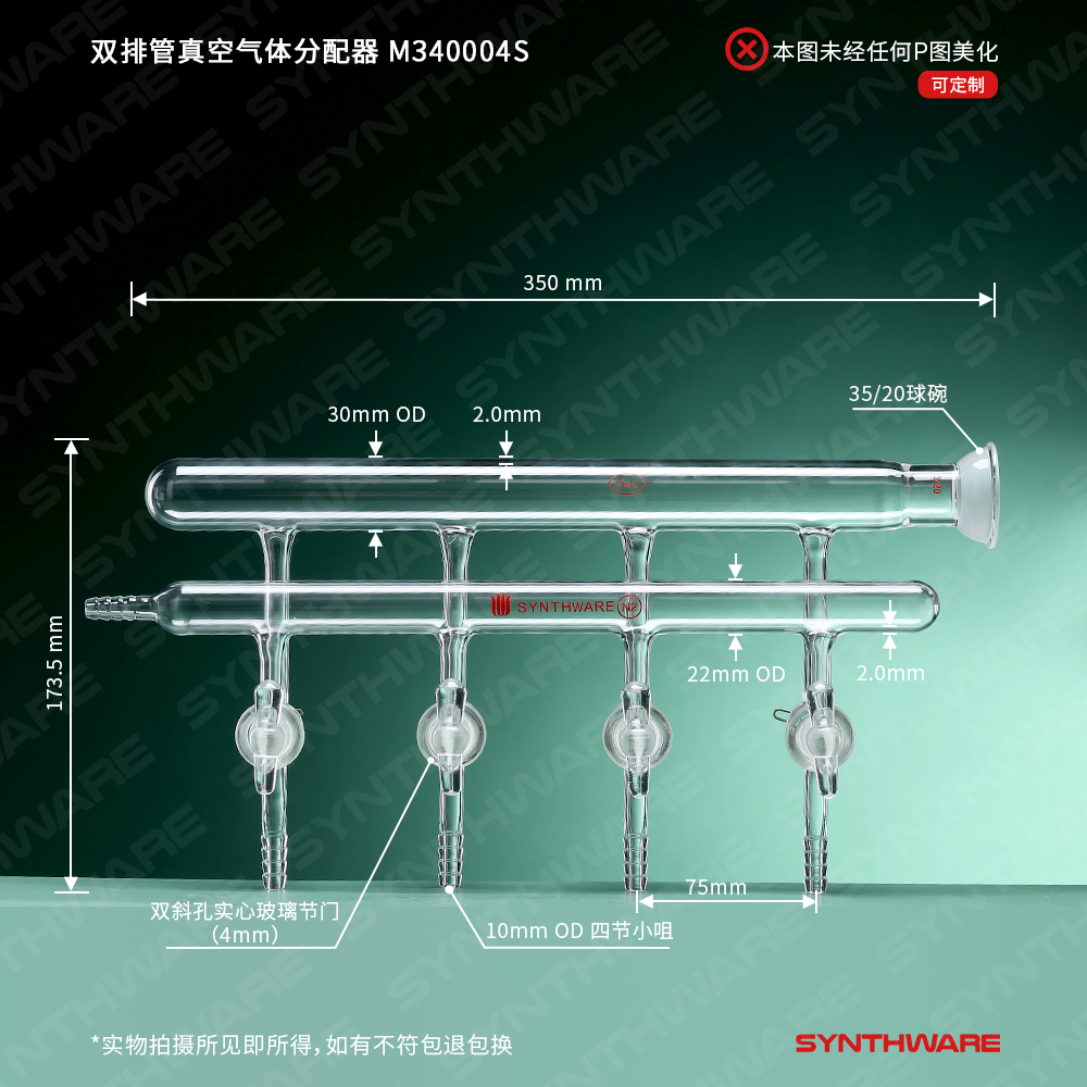 双排管真空气体分配器,空心玻璃节门,4,375mm,3球碗,左右前右后 M270004