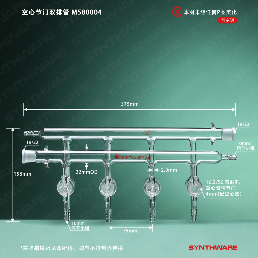 双排管真空气体分配器,空心玻璃节门,4,375mm,4小咀 M411004