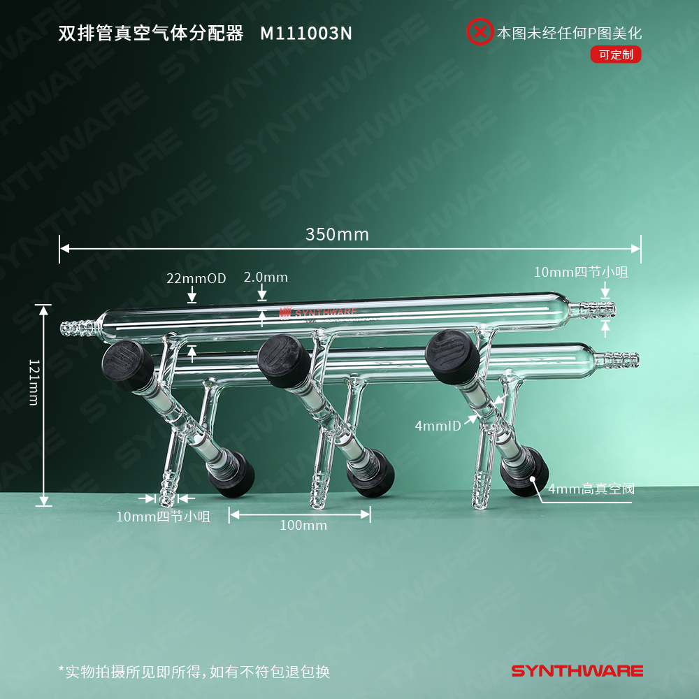 双排管真空气体分配器,具内螺纹高真空阀,3,350mm,4小咀 M111003N
