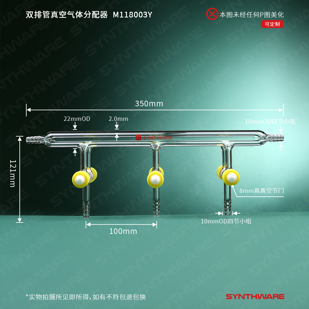 双排管真空气体分配器,具新型高真空阀,3,350mm,4小咀 M118003Y