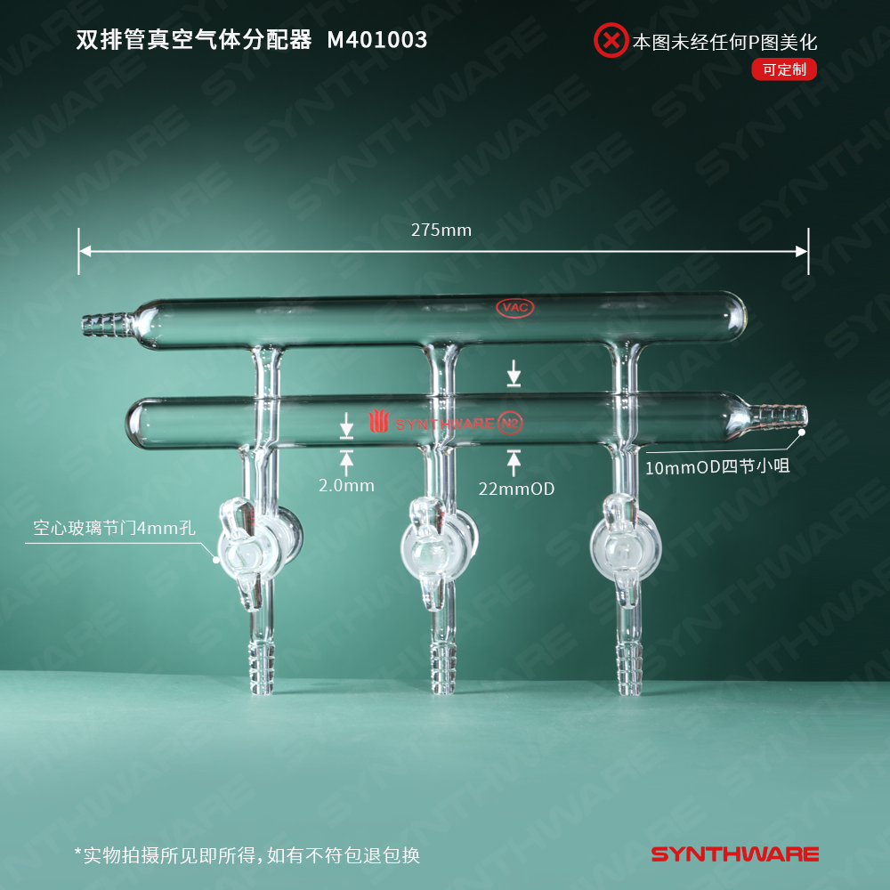 双排管真空气体分配器,空心玻璃节门,3,300mm,4小咀 M411003